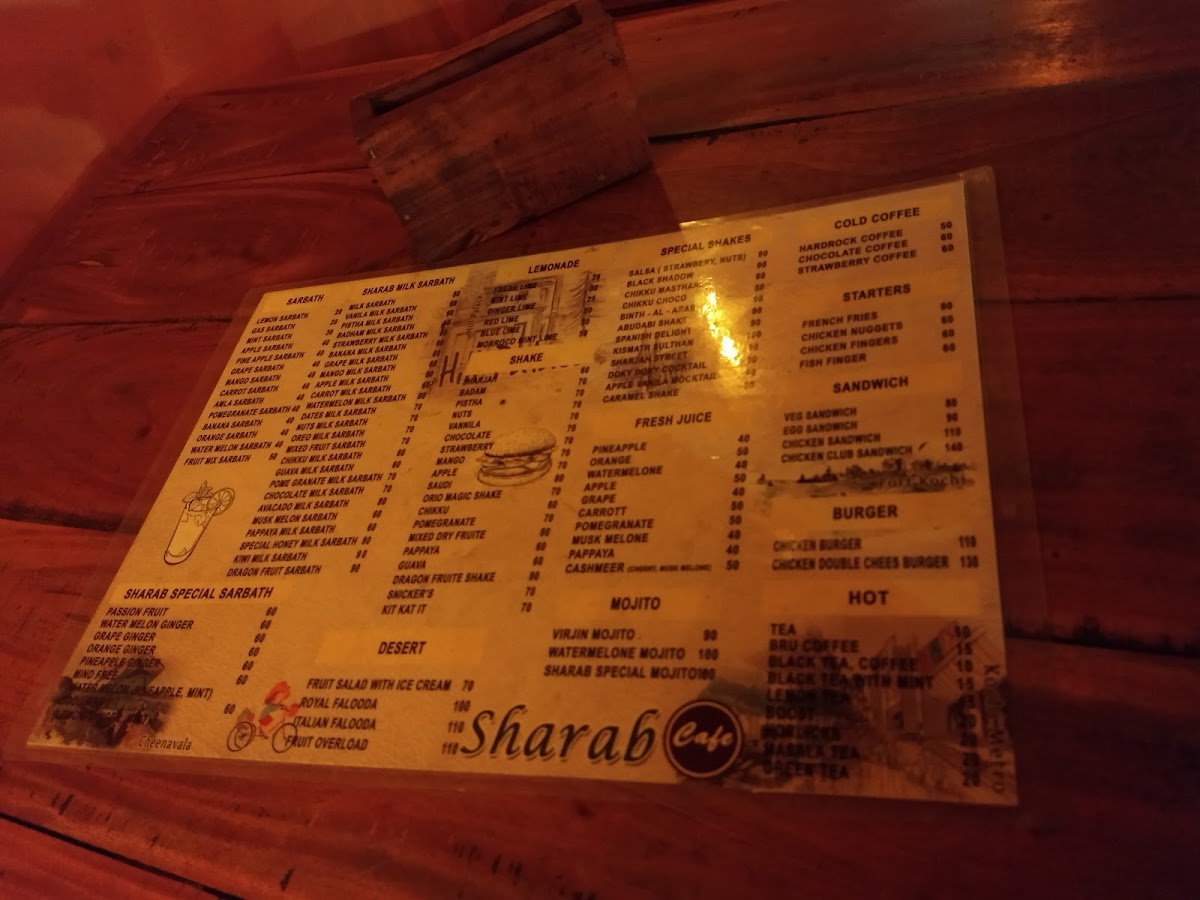 Welcome to Sharab Cafe, a delightful gem located at Banerji Rd, Kaloor, Ernakulam, Kerala. This unique cafe is not just a stopover but an experience, particularly known for its extensive range of sarbaths and snacks that invigorate the senses.